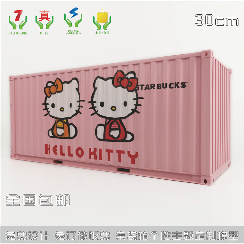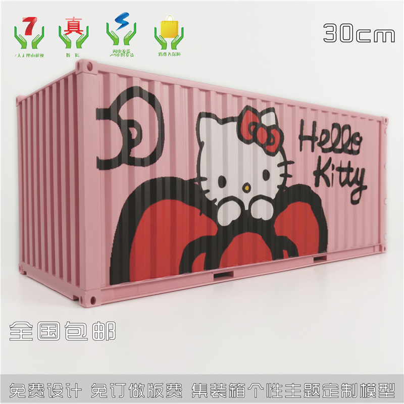 1:20创意涂鸦集装箱HELLO KITTY集装箱纸巾盒笔筒模型制作