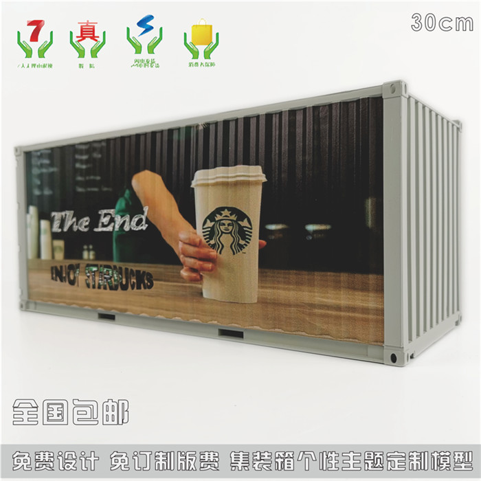 1:20创意涂鸦集装箱星巴克集装箱纸巾盒笔筒模型制作